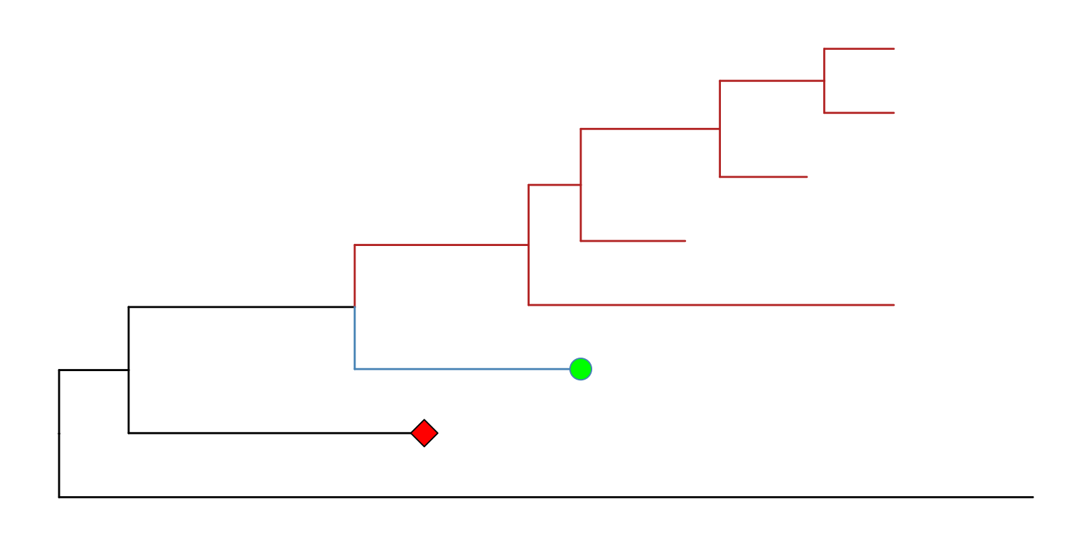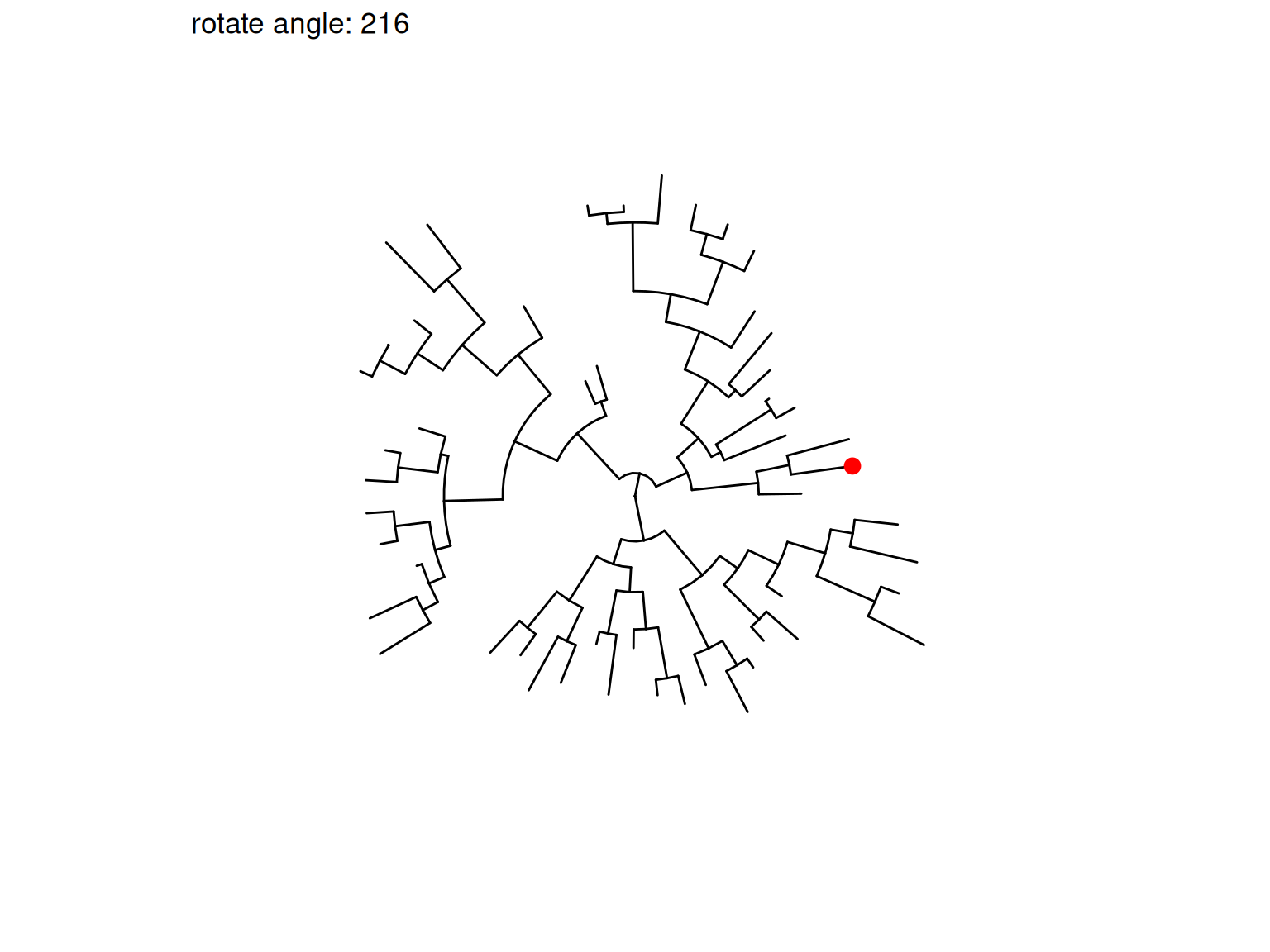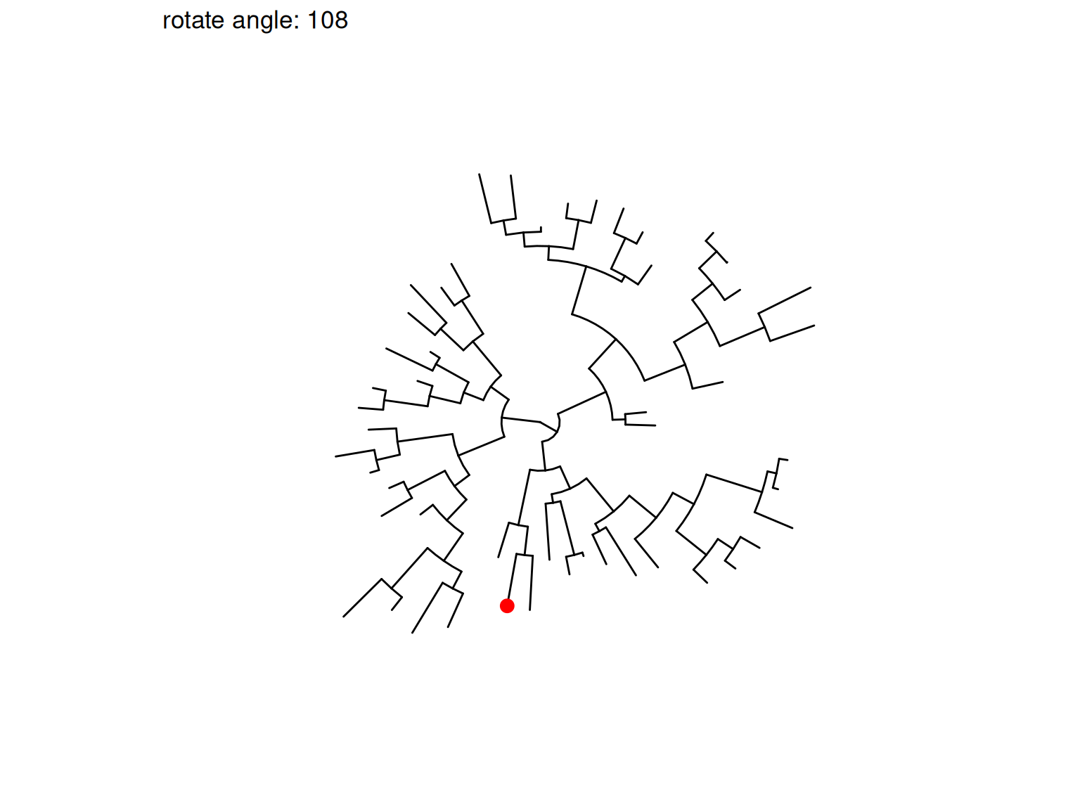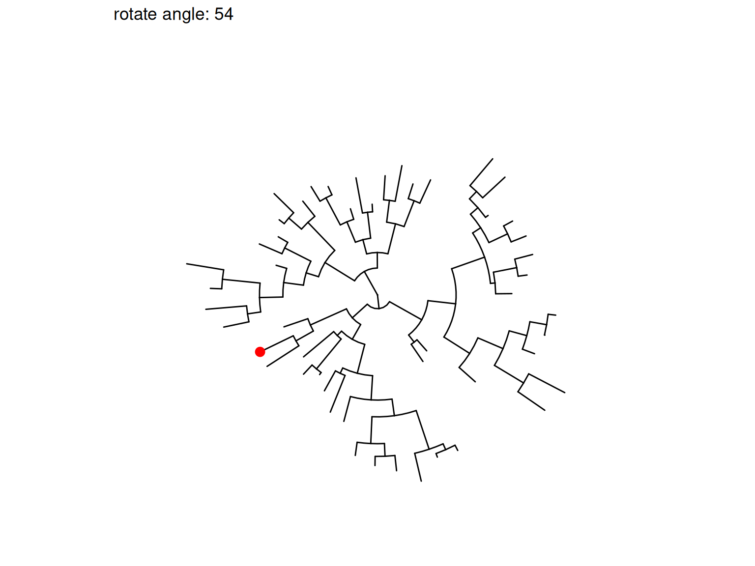 Figure 8.9: Rotate selected clades. Four clades were randomly selected to rotate (indicated by the red symbol).