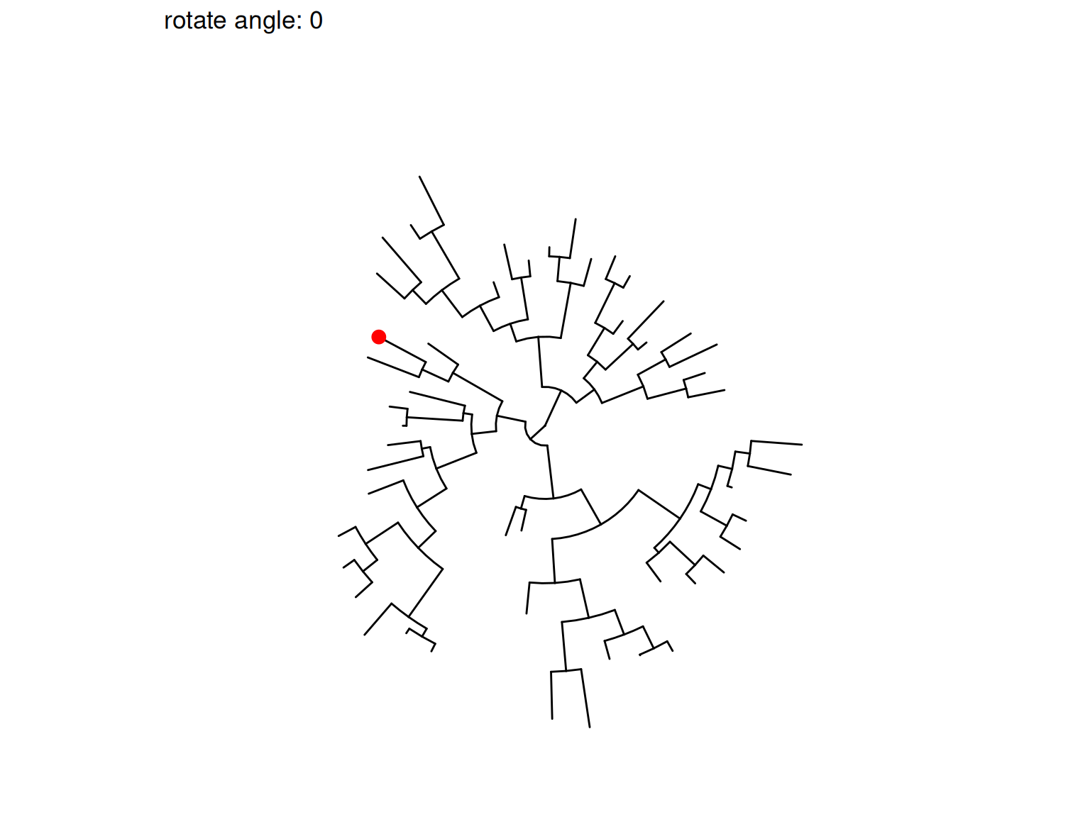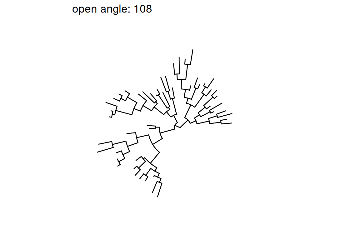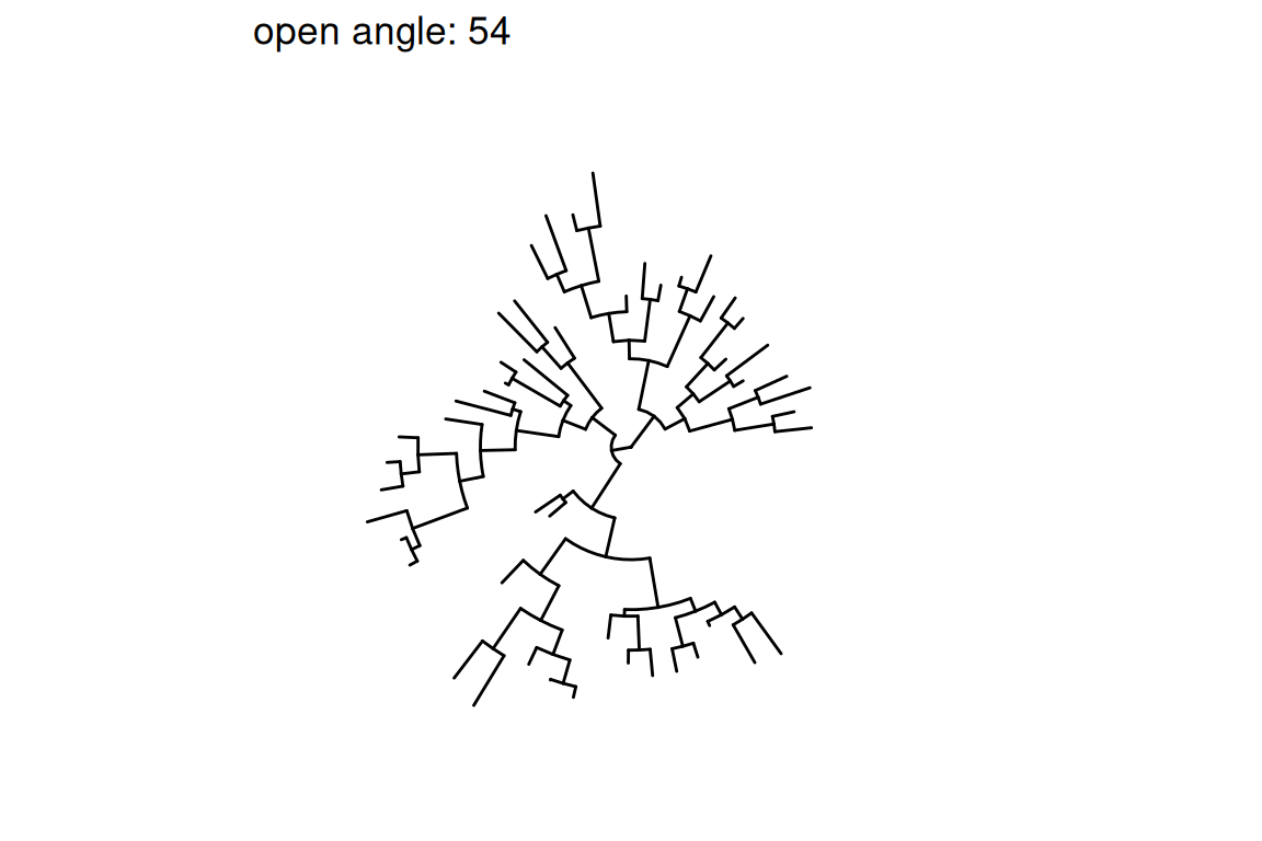 Figure 8.7: Transforming a tree to fan layout. A tree can be transformed to a fan layout by open_tree with a specific angle.