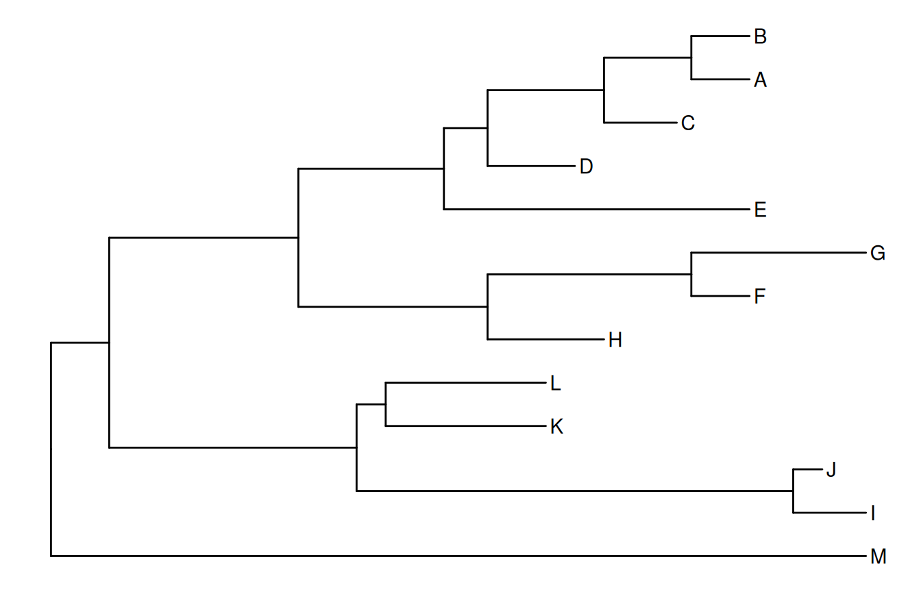 The following example rotates four selected clades (Figure Figure 8.9). It is easy to traverse all the internal nodes and rotate them one-by-one.