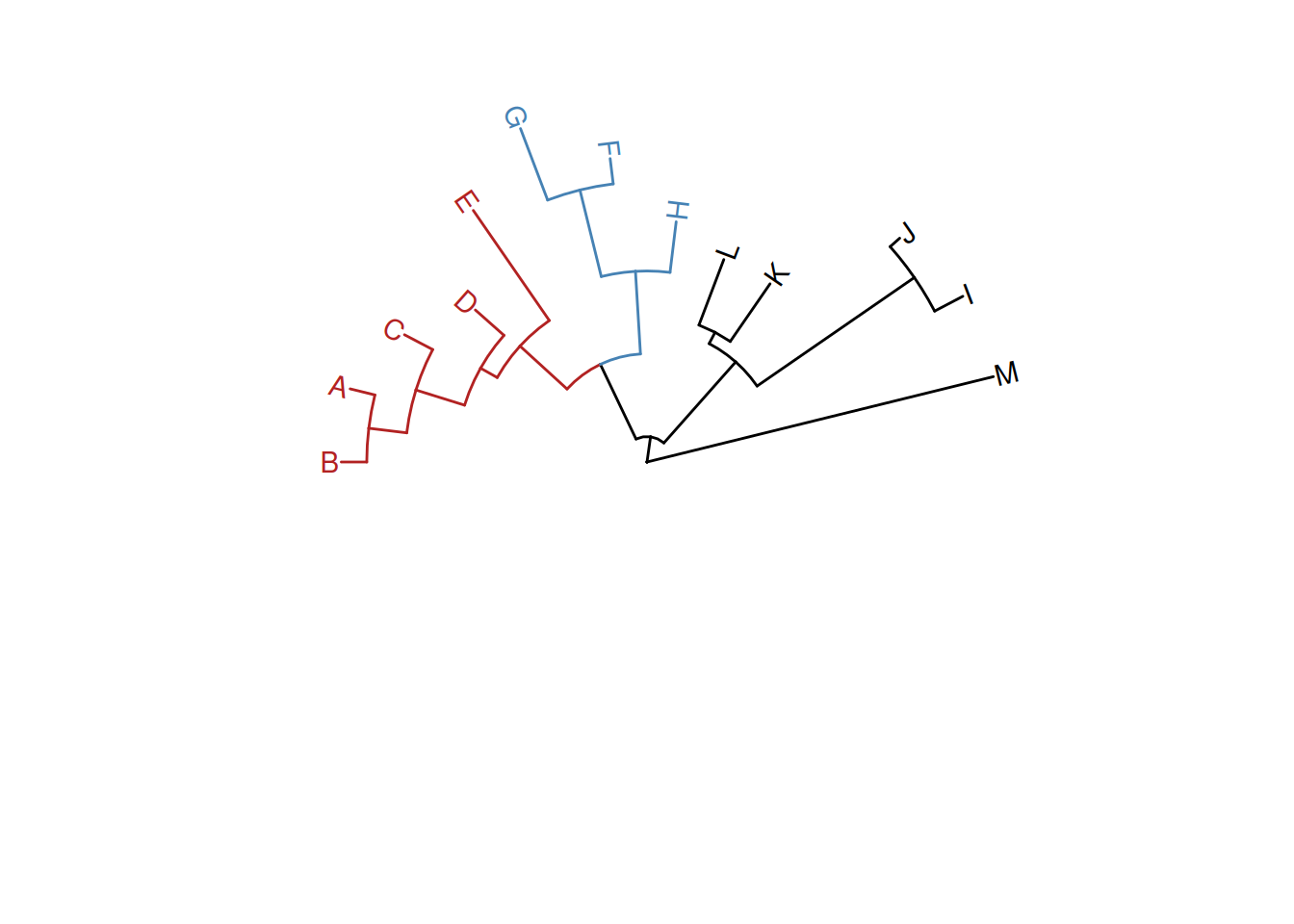 Figure 8.5: Grouping OTUs. OTU clustering based on their relationships. Selected OTUs and their ancestors up to the MRCA will be clustered together.