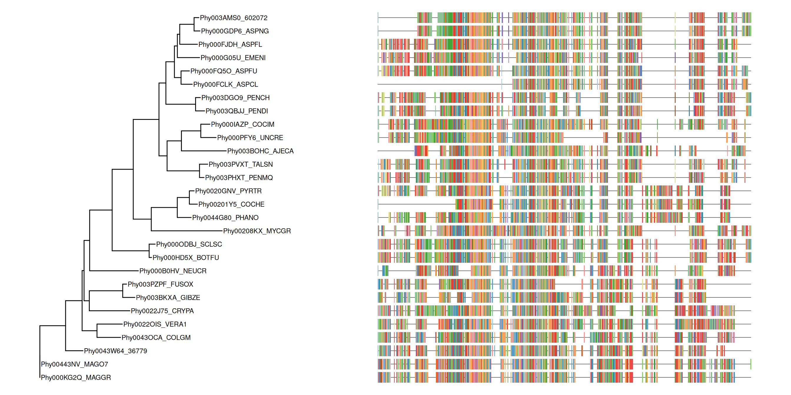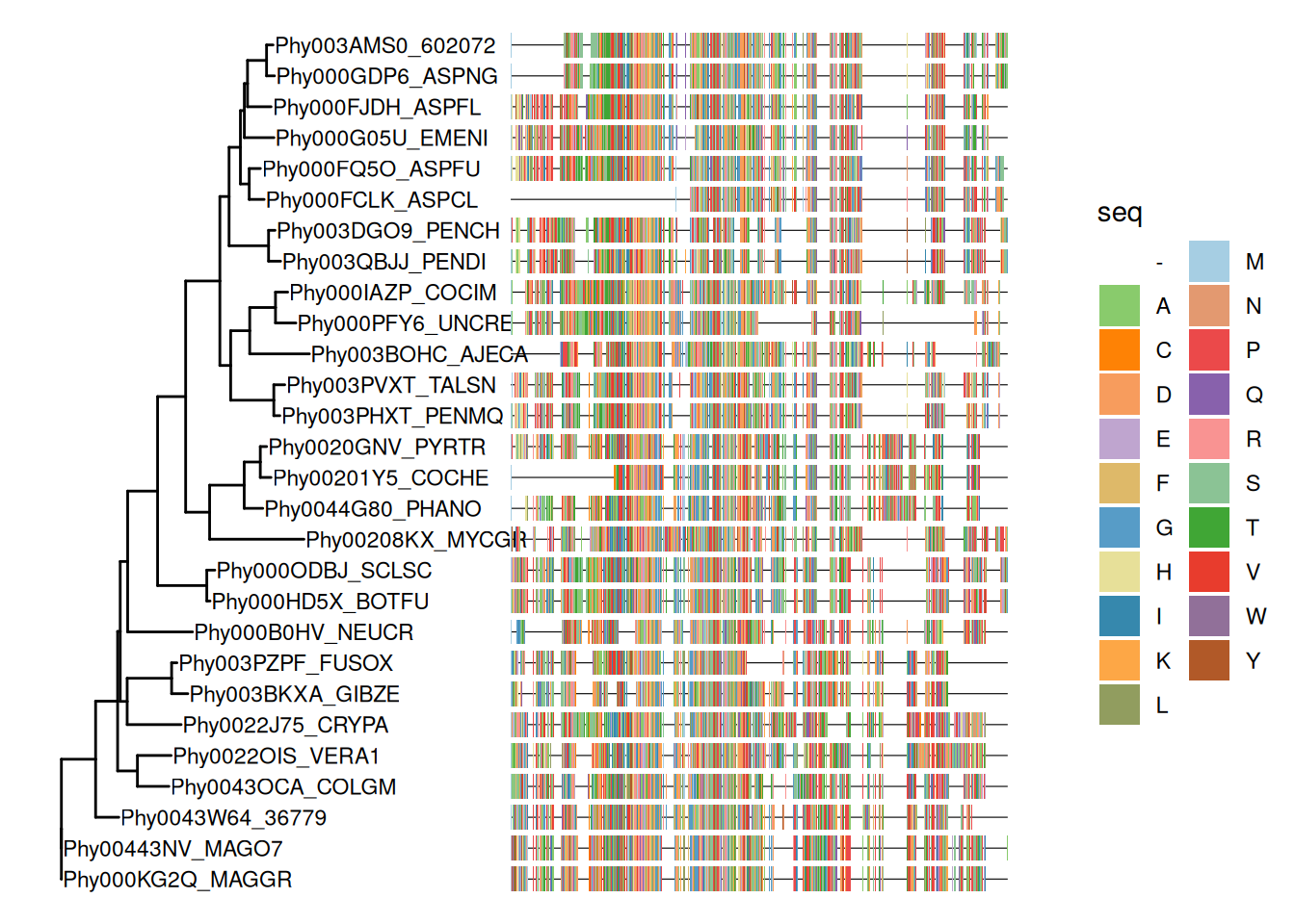Figure 9.5: Example of plotting multiple sequence alignments with a tree.