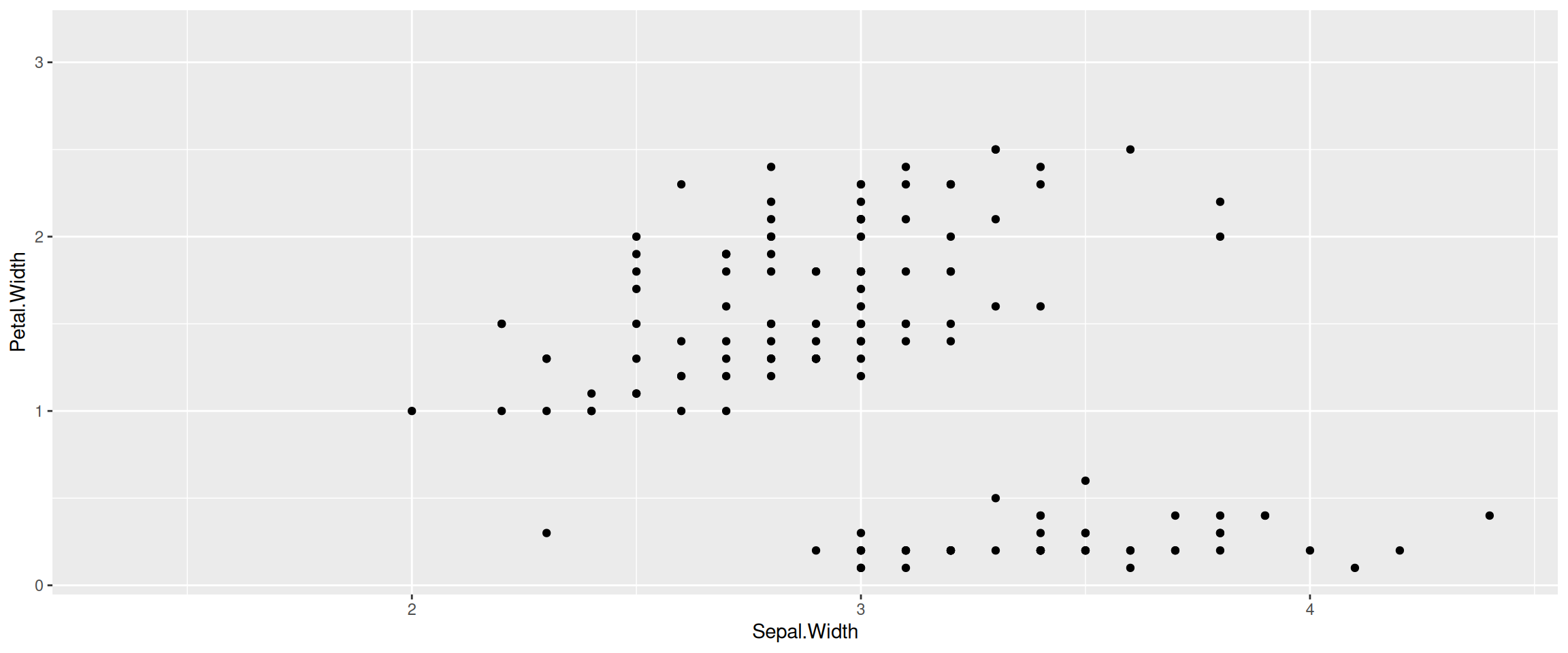 p <- ggplot(iris, aes(Sepal.Width, Petal.Length)) +