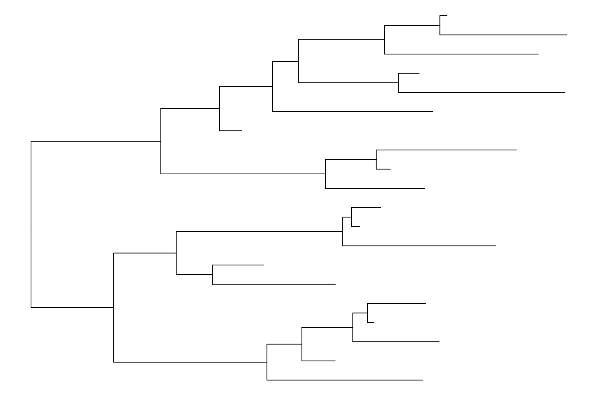 p <- ggtree(tree, branch.length = "none") +