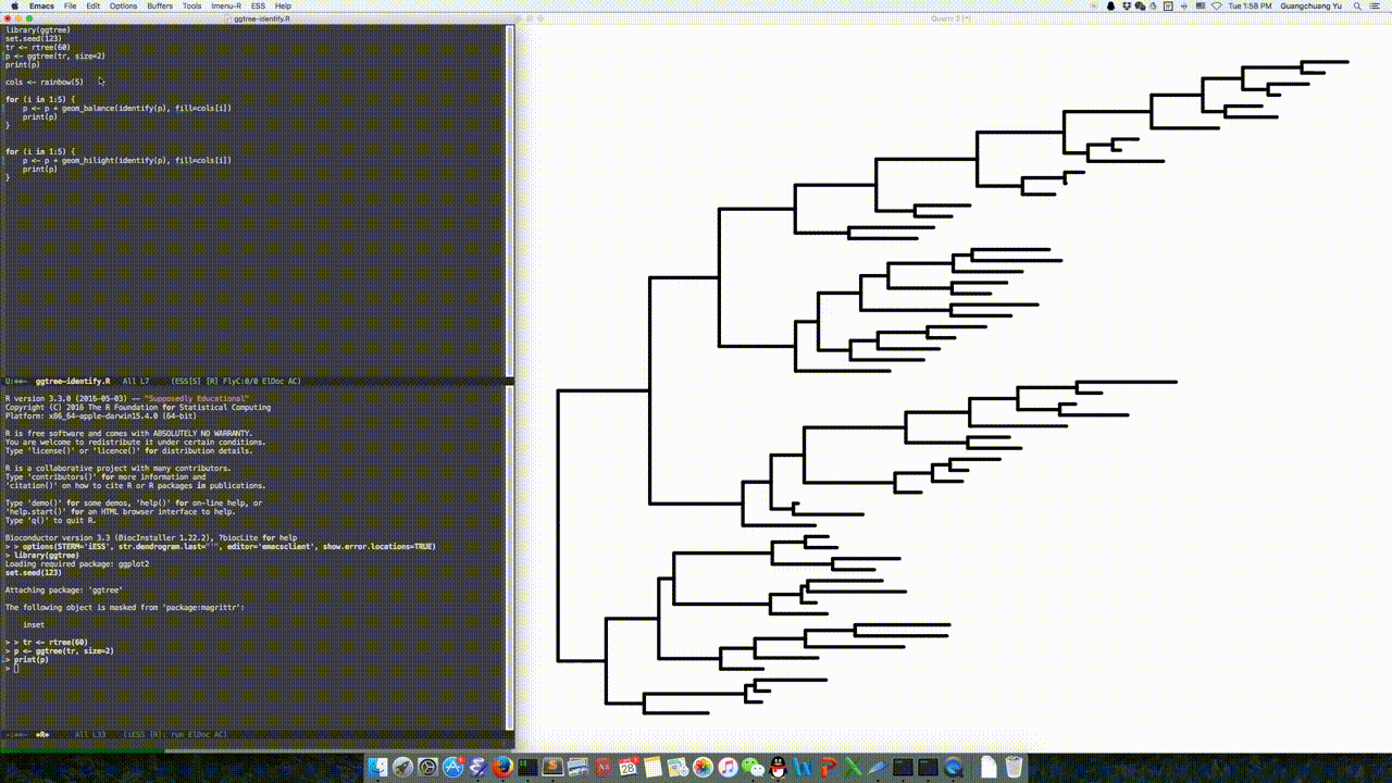 Video of using identify() to interactively manipulate a phylogenetic tree can be found on Youtube and Youku: