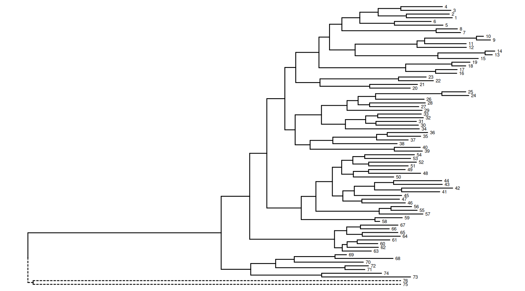 Rooted; no branch length.
