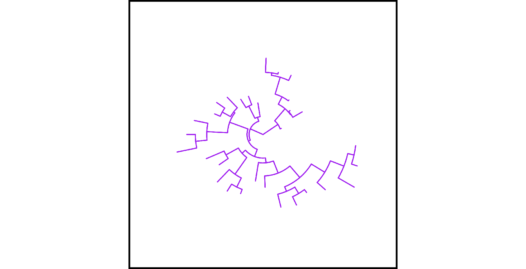 This question for enlarging center space in circular/fan layout tree was asked several times7, and a published example can be found in (Barton et al., 2016). Increasing the percentage of center white space in a circular tree is useful to avoid overlapping tip labels and to increase the readability of the tree by moving all nodes and branches further out. This can be done simply by using xlim() or hexpand() to allocate more space (Figure Figure 1.14 (a)), just like in Figure Figure 5.3 (g), or assigning a long root branch that is similar to the “Root Length” parameter in FigTree (Figure Figure 1.14 (b)).
