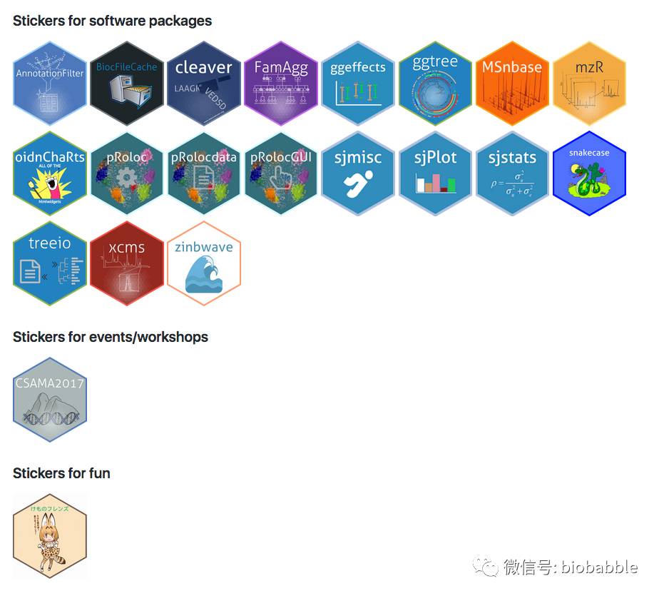 目前已经有很多包使用hexSticker来生成logo,也有workshop在使用: