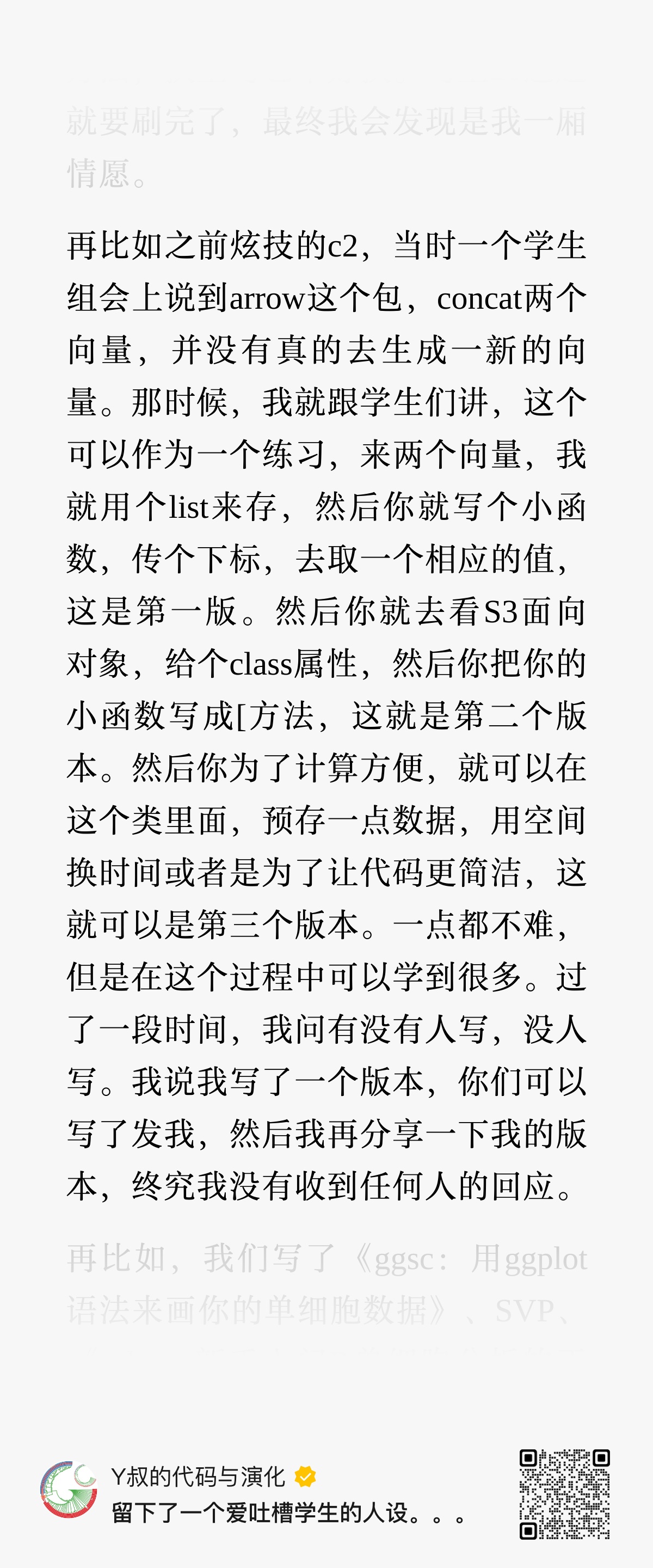 做 R 的性能优化,有一个场景几乎人人踩过坑:在循环里不断 c(v, new) 追加数据。小数据时看不出来,一旦规模上来,速度像被抽走一样。