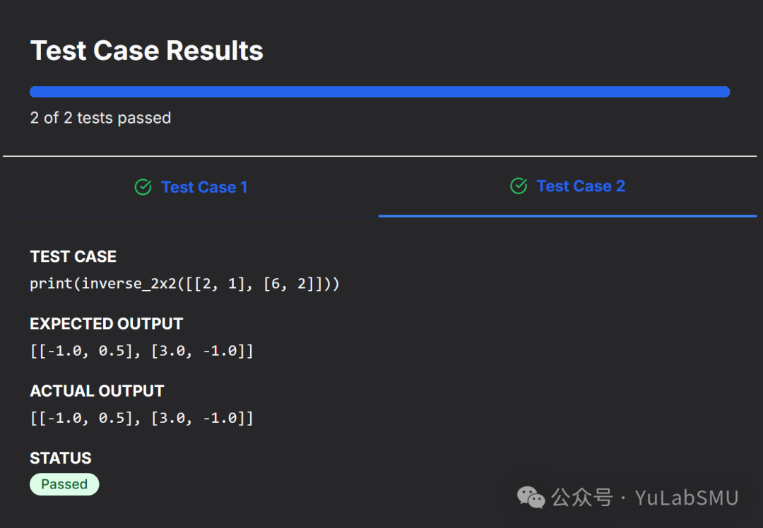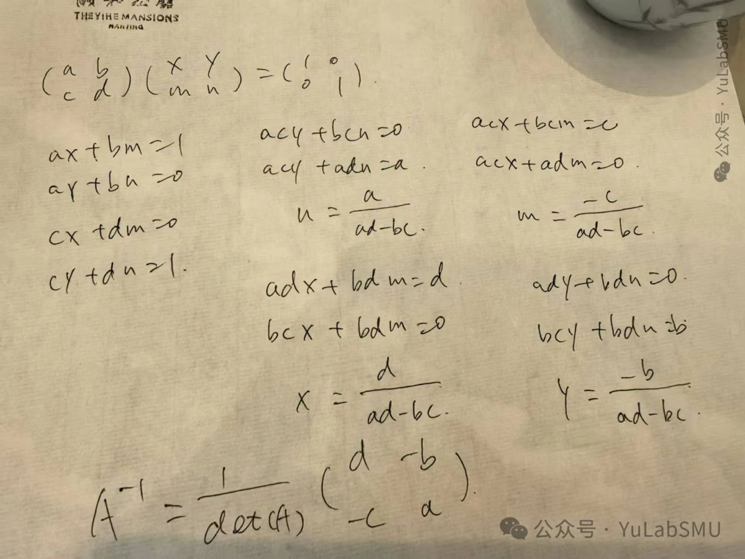 因为是2x2的矩阵,比较简单,我们稍微算一下,就可以得到A-1每个元素是怎么换算过来的。然后代码嘛,就按照算好的公式直接计算就好了。