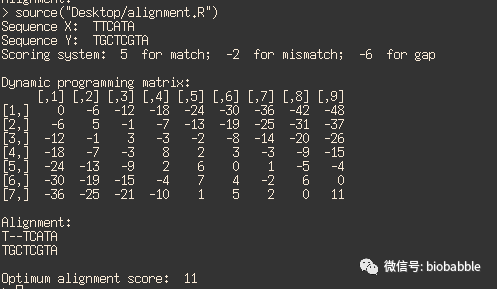 cat ("Optimum alignment score: ", score[length(score)],"\n")