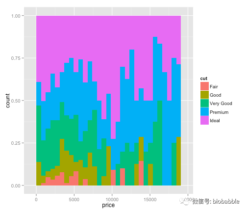 同样可以根据另外的变量给它填充颜色,比如按不同的切工: