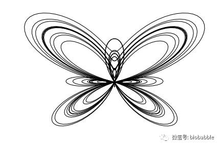 radius <- exp(cos(theta)) - 2*cos(4*theta) + sin(theta/12)^5dd <- data.frame(x=radius*sin(theta), y=radius*cos(theta))