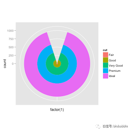 柱状图两个要素,一个是分类变量,一个是数目,也就是柱子的高度。数目在这里不用提供,因为ggplot2会通过x变量计算各个分类的数目。