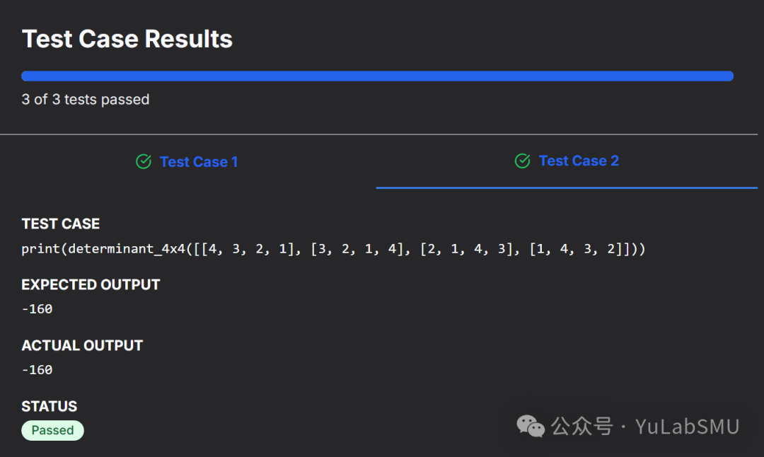 所以求nxn方阵的行列式,展开后,就变成了求(n-1)x(n-1)方阵的行列式。这样子就可以用递归的形式来写。一个最基本的case,就是1x1的方阵,返回这个唯一的值即可。