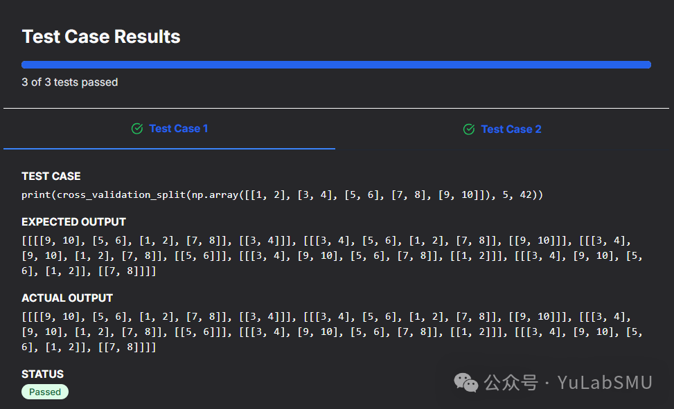 K折交叉验证,就是把数据切成K份,每一份作为验证集,然后剩下的作为测试集,这样就可以循环做K个模型。这道题要的就是作这样的数据切分。