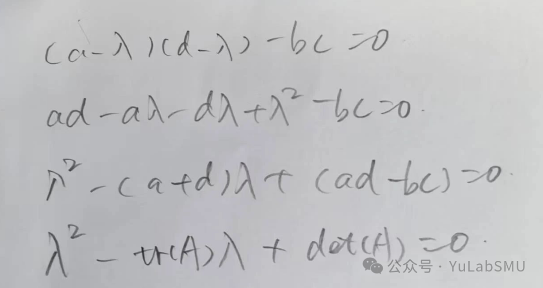简单推一下,就可以等到上面这个等式。根据线性方程组理论,要使这个Bx=0有非零解,B的行列式就必须为0。