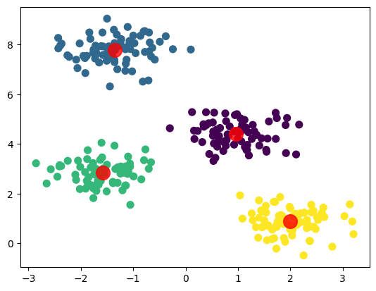 plt.scatter(centers[:, 0], centers[:, 1], c='red', s=200, alpha=0.8)